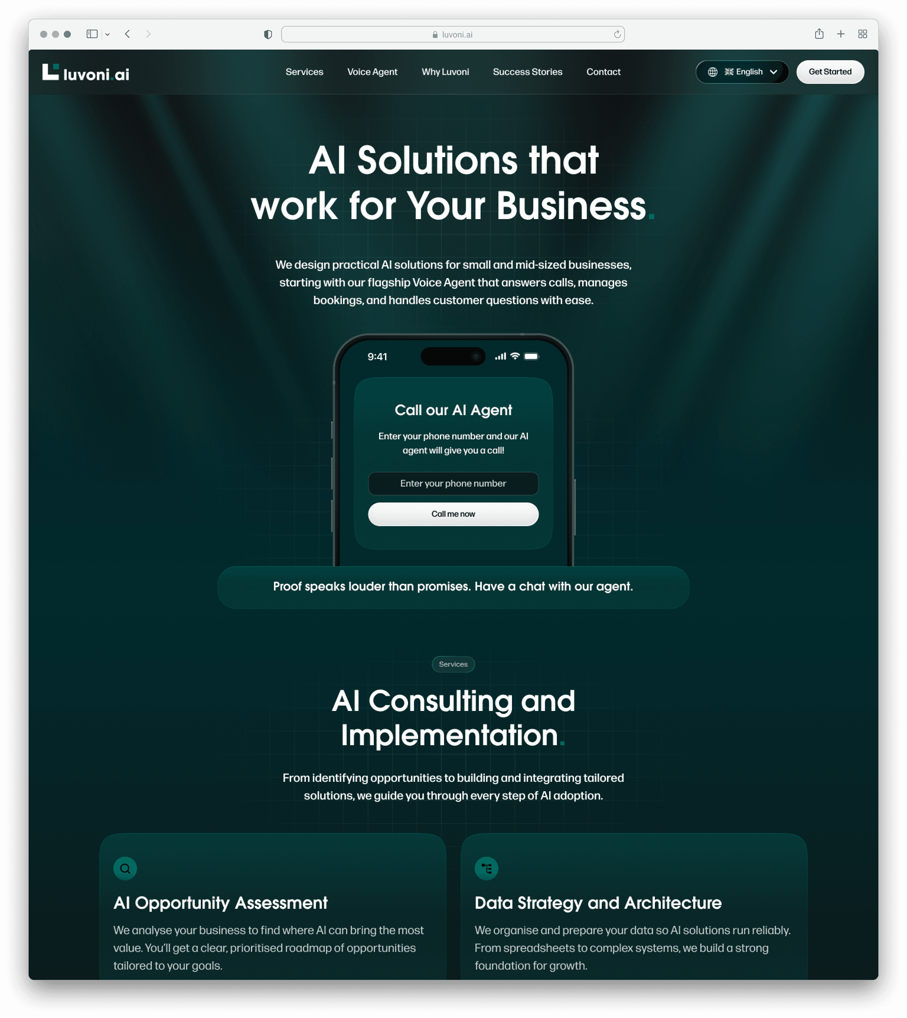 Creating a bold new brand and website for an AI consultancy, designed to build trust and clearly communicate practical, business-ready AI solutions. The work focused on translating complex capabilities into a confident, approachable digital presence that speaks to real business needs. From strategic positioning through to a sleek, modern web experience, the result positions Luvoni as a credible partner for growing companies looking to apply AI in meaningful ways.