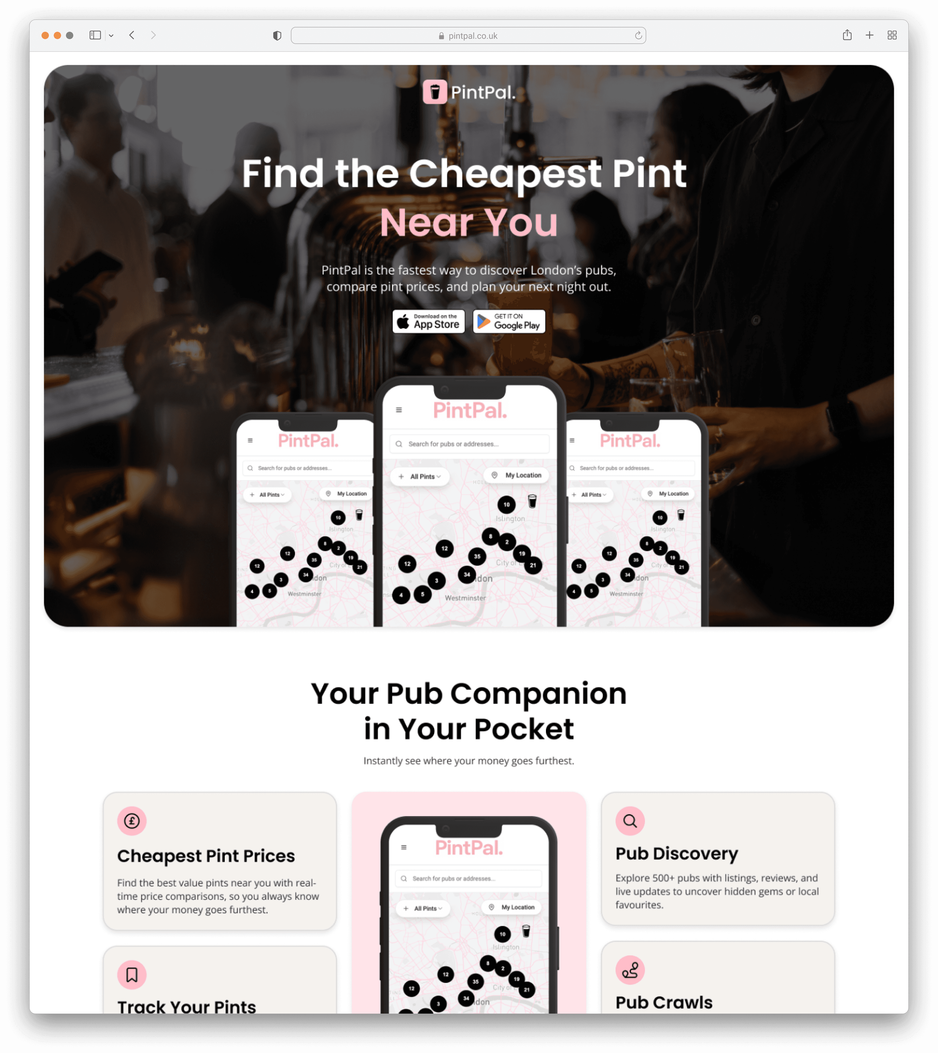Designing the brand, website, and mobile experience for a social app that helps Londoners find the cheapest pint nearby. The focus was on creating a fun, intuitive product that makes pub discovery quick and effortless, while still feeling playful and social. Through clear UX and a distinctive visual identity, PintPal brings a practical idea to life with personality.